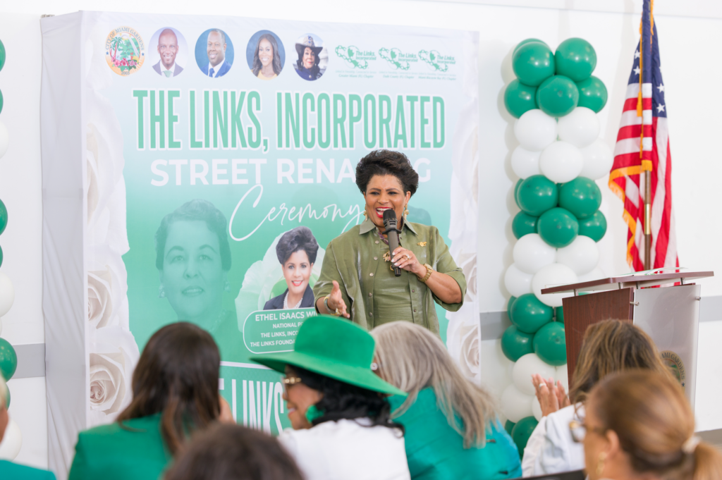 Civic leaders, elected officials, and members of The Links, Incorporated gathered Saturday for the unveiling of The Links, Incorporated Way in Miami Gardens, marking the first street in the nation to bear the organization’s name.